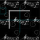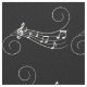 white swirly music notes on black
