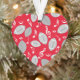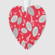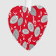 A jumble of grey footballs and white music notes against a red background is a unique music design for musicians, music teachers and students.