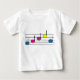 Bring a smile to your little one's face with this infant T-shirt that has music notes in pink, blue, purple and yellow on a music staff