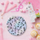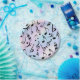 An array of black musical notes on multicolored iridescent party plates. Great for music lover parties. The pastel background also makes it great for a birthday party or baby shower, especially for a musician or singer. Shown are the 7" round custom party plates. Other sizes available. Matching party napkins available in a variety of sizes. Designed by Heard_, and 369.