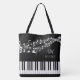 Music Notes Keyboard Name Monogram Custom Colour Tote Bag