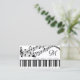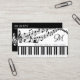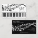 Personalised, custom colour business cards featuring a piano keyboard and music staff with notes in your choice of graphics and background colours or choose from a selection of designer graphic backgrounds and monogram in your choice of font styles and colours to create your own custom look in EDIT. The sample shows black and white. ASSISTANCE: For help with design modification or personalisation, colour change, transferring the design to another product or if you would like coordinating items, contact the designer BEFORE ORDERING via the Zazzle Chat MESSAGE tab below or email makeitaboutyoustore@gmail.com.