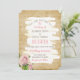 Vintage sheet music and Pink roses and Beige Floral Wedding Invitation