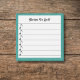 This small square 3x3 sticky notepad can be personalised with a name or message. It says "Notes to Self", and is music themed with musical notes on the lines. It can make a nice stocking stuffer for a musician or music lover. There is a textured turquoise teal pattern border.