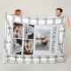 This custom keepsake blanket a white coloured background with black music notes printed across it. A sample name is printed at the top which you can personalise to include your own name, custom message, or quote. A large photo is placed in the centre portion with four other sample family photographs placed in the bottom. A simple grey border frames the blanket. It's perfect for the musician in your life.