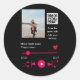 Music player personalised couple love q r code tex classic round sticker