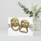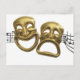 A musical score waving and bending behind iconic Comedy and Tragedy theater