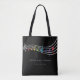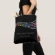 This black musical totebag showcases silver music staves, a treble clef, and rainbow music notes. It's the perfect accessory for children choir concerts, music event organizers, music school offices, singers, band conductors, violin, flute or harp teachers or as a music teacher gift. Personalise it with your own text, and easily adjust the font's size and placement using the editing tool. If you need any further assistance with customisation, please don't hesitate to contact us through Zazzle.