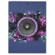 Purple music speaker and splattered paint on a blue background