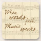 This pretty design features the sentiment, "When words fail, music speaks", on an almond toned sheet music look background.