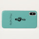 Music Symbol device case, with a cute black treble clef design set on a teal green background. With black lettering, you can personalise with your own name. Great for adding a musical touch to your cell phone.