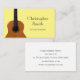 Music teacher business card, with an acoustic guitar image on a yellow background. With black lettering, you customise with your own information. Great for spreading the word about your guitar music lessons business!