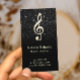 Music Teacher Musical Clef Logo Black Glitter Business Card.