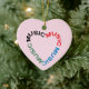 Colourful text repeating the word music and forming the shape of a heart is a fun design for musicians, music students and teachers.