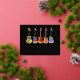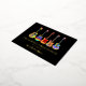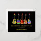 Music themed christmas guitars black and gold foil personalised seasons greeting holiday card. Let’s rock and roll this Christmas with these fun, colourful jazzy, guitars wearing Santa hats on a black background. Cool Acoustic guitars, electric guitars and semi acoustic guitars psychedelic colourful designs to bring holiday cheer to your guitarist musician friends and budding rock stars. This funny musical instrument seasons greetings holiday postcard can be easily personalised using the templates. Original artwork by artist Catherine Sweetman