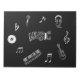 A music themed notepad. White music themed graphics, on a black cover, centred around the word music.