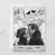 A romantic Save the Date card featuring your own favourite photo framed by a music themed design in black and white with musical notes and singing love birds on a lace grunge background.