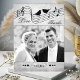 Romantic wedding Thank You postcard featuring your own favourite wedding picture framed by a music themed design with lace and singing love birds in black and white.