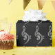 A piece of classy simple black/white music themed wrapping paper - white treble and bass clefs against a textured black background. Music Love.