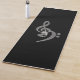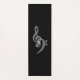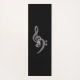 A classy simple black/white music themed yoga mat - white treble and bass clefs against a textured black background. Music Love.