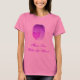 A purple music note in the shape of a heart on a pink Tshirt. Underneath reads "Music lies Within the Heart". The perfect gift for anyone who is a music lover!