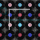 Retro music vinyl records from the 80s with music notes.