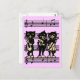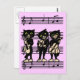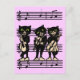 This is a 1930's vintage image of three black cats with green eyes playing their musical instruments. They are making music with a saxophone, fiddle, and guitar. The background is pale pink with a sheet of musical notes. See my store for other products with this design.