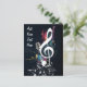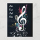 A colourful abstract of a white cleft note with a silver microphone, surrounded by music notes on a black background. Great for a singer, instrument player or someone who loves to listen to music.