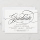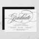 This formal graduation party design features a classic script text with a timeless black and white colour-way.