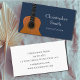 Musical Instrument lessons business card, with an acoustic guitar image on a navy blue background. With white and black lettering, you can customise with your own information. Great for spreading the word about your guitar music lessons business!
