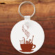 This design is musical instruments and notes. The instruments and notes are in a red mug. This musical instruments and notes design looks great on this Keychain