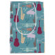 Musical instruments pattern. Piano, saxophone, guitar, trumpet and musical notation.