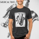 A music themed t-shirt with the photographic image of silver flute, trumpet and saxophone against grey. Why settle for one musical instrument when you can have a musical trio. Ideal for a musician or music lover.