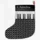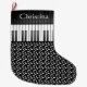 Black and White Musical Piano Keyboard Design Large Christmas Stocking with customisable personalisation.