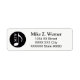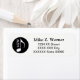 A cool address label with a graphic circle image of a musical note, personalised with your own name, initials and additional information