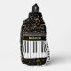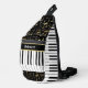 Musical Notes and Piano Keys Black and Gold Sling Bag