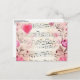 Postcard with a elegant and nostalgic design. Music sheet decorated with a big pink heart and pink roses and wildflowers around the edges.