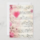 A wedding invitation with a elegant and whimsical design. Music sheet decorated with a big pink heart and pink roses and wildflowers around the edges.