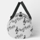 A Grey Duffel Bag Patterned In Musical Notes For Gym Or Travel