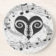cool modern musical notes floating from a black heart with black and white piano keys on a grey musical note background . Great gift for any music lover. sgb01