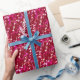 A cascade of musical notes in fuchsia pink, pale pink, beige and cream on a deep burgundy wine background
