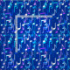 A cascade of musical notes in turquoise, violet, pale pink, aqua and white on a deep indigo blue background