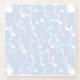 A cascade of musical notes in turquoise, violet, pale pink, aqua and white on a deep indigo blue background glass coaster