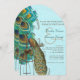 Peacock Blue Feathers and Bird Cage Wedding Invitations. Aqua Blue Copper Mint Green Gold Peacock Colours Musical Notes Singing Peacock Elegant and Romantic Rustic Chic Weddings.