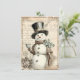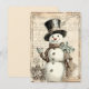 Celebrate the season with this charming holiday card featuring a cheerful snowman in a tall top hat, holding a broom and a sprig of holly. Set against a background of faded musical notes and antique script, this design blends festive whimsy with nostalgic elegance. Perfect for heartfelt messages, cosy winter collections, or anyone who loves a classic dose of Christmas joy wrapped in vintage flair.