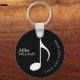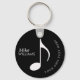Musical note on (custom colour) black_keychain, personalised with name and text... special for a musician, music_teacher, music store or school of music promotions
