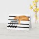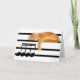 Long haired orange tabby kitty cat snoozes on the staff lines of a music score cat and music lovers greeting card