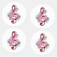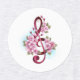 Pink treble clef with delicate, detailed pink Japanese cherry blossoms against white background painted over with light blue paint. Blooming pink sakura.