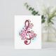 Pink treble clef with delicate, detailed pink Japanese cherry blossoms against white background painted over with light blue paint. Blooming pink sakura.