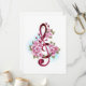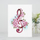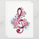 Pink treble clef with delicate, detailed pink Japanese cherry blossoms against white background painted over with light blue paint. Blooming pink sakura.